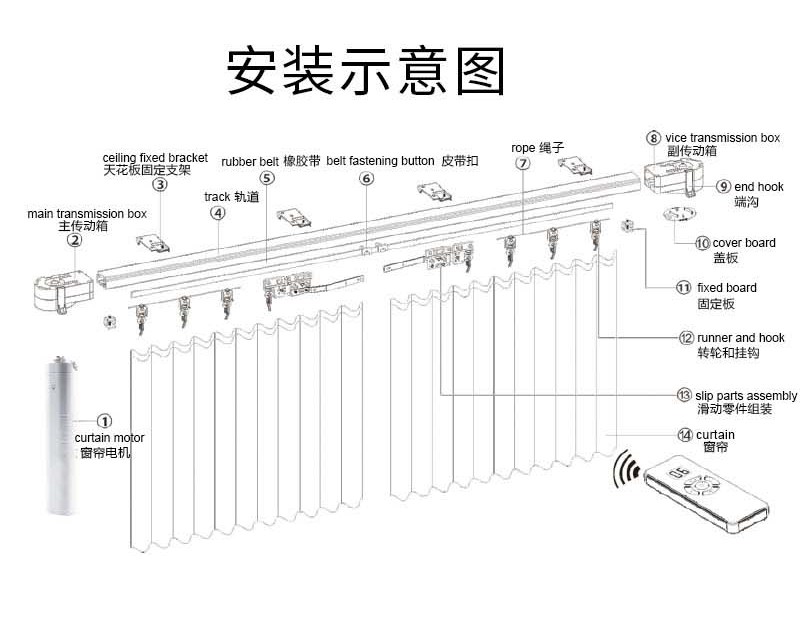 無線窗簾WIFI語音控制神器涂鴉智能電動窗簾伴侶羅馬桿窗簾助力器